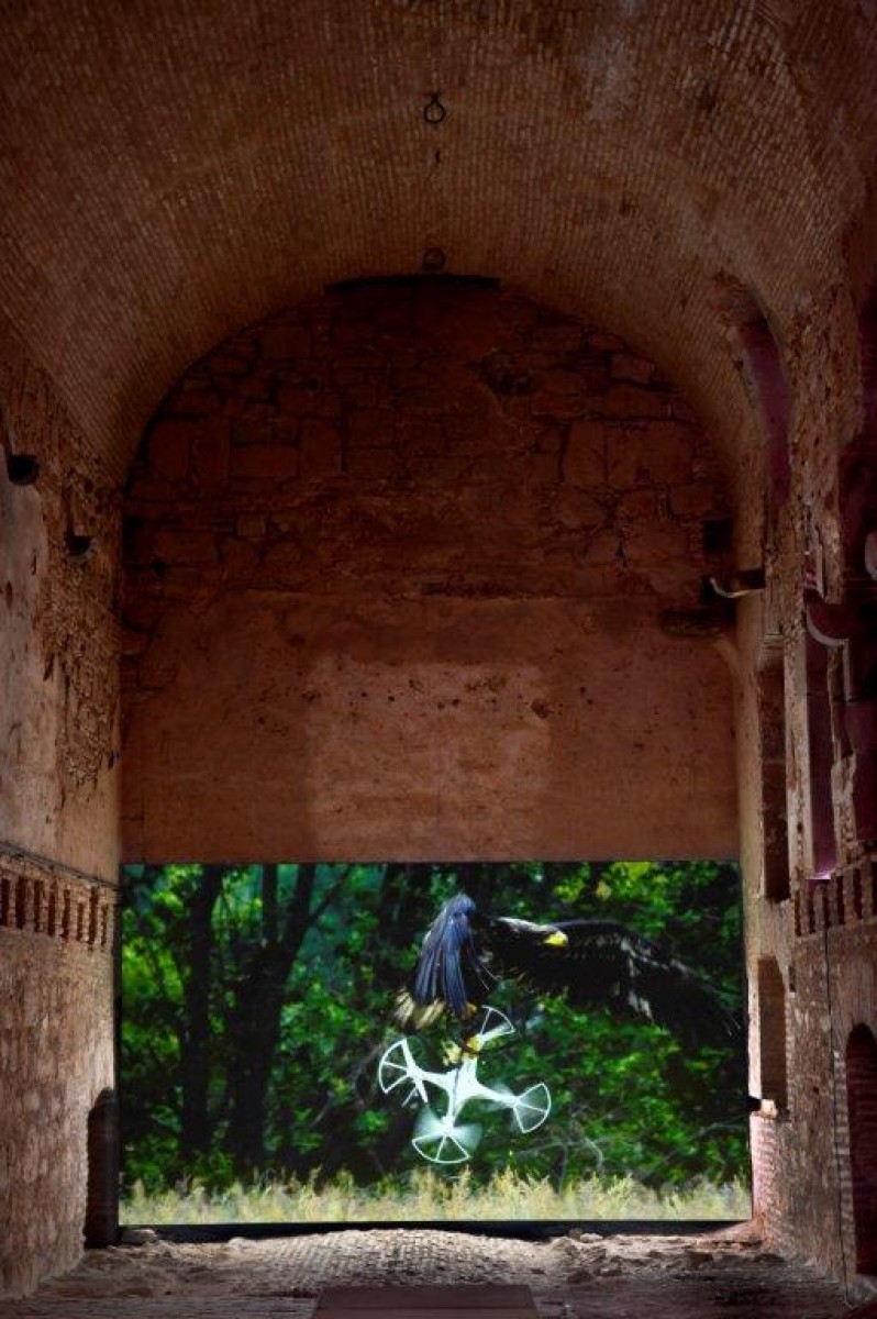 Le thème du territoire est au coeur du récent film de Mircea Cantor qui met en scène un aigle qui intercepte un drone. L’instinct du rapace lui commande de traquer cet objet étranger sans qu’il devine la vraie nature de cet « ennemi ». À la curiosité succède la surprise et la perplexité devant la découverte de cette proie artificielle. Ces scènes correspondent à un véritable entraînement d’aigles dressés par la police néerlandaise pour lutter contre des drones malveillants.