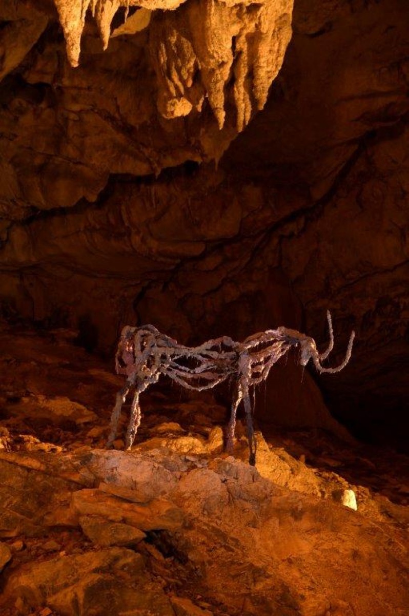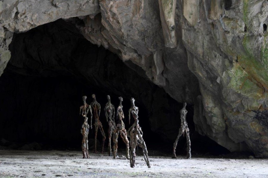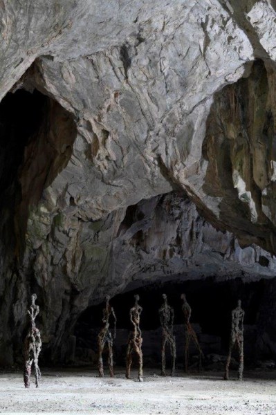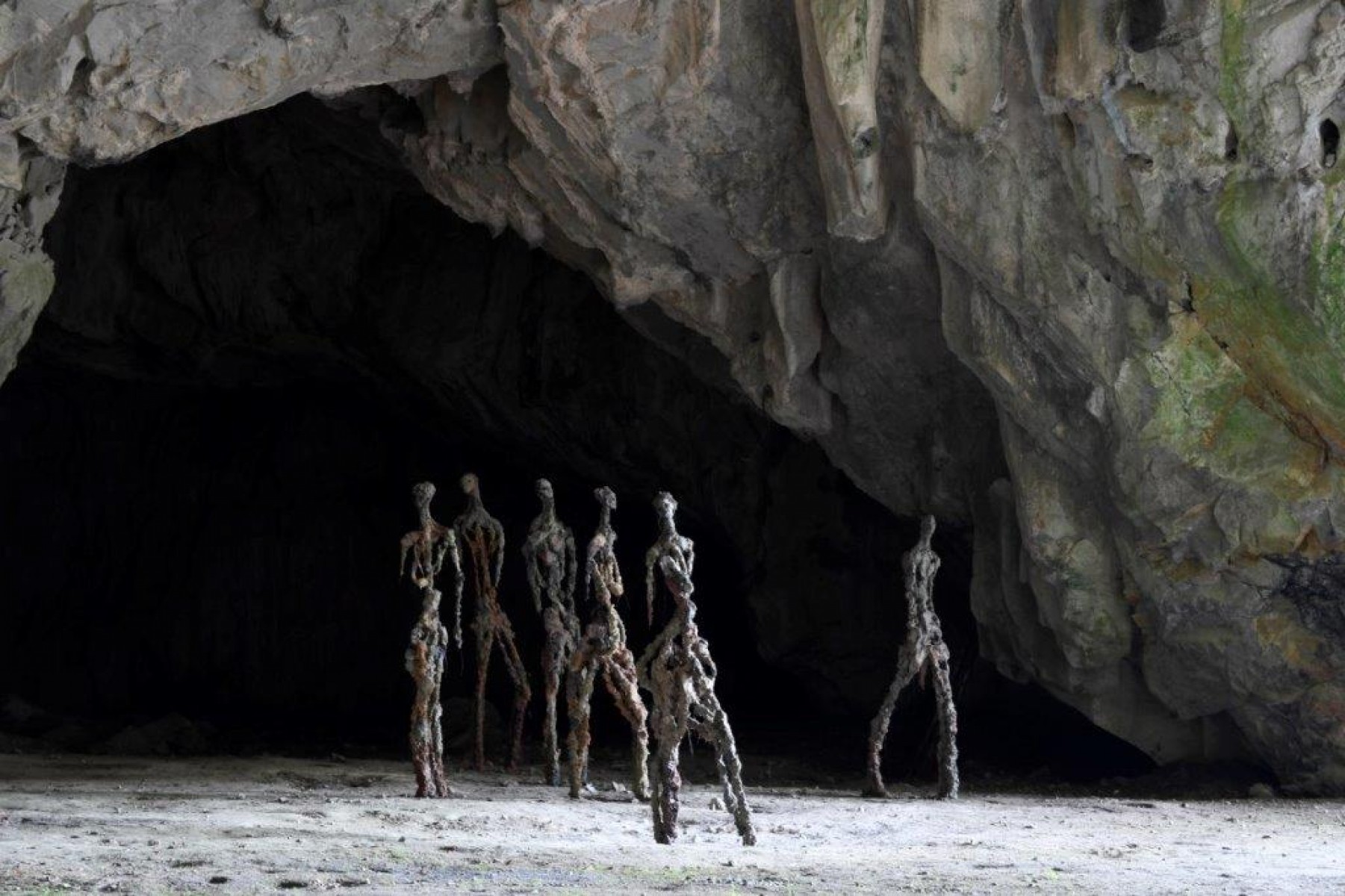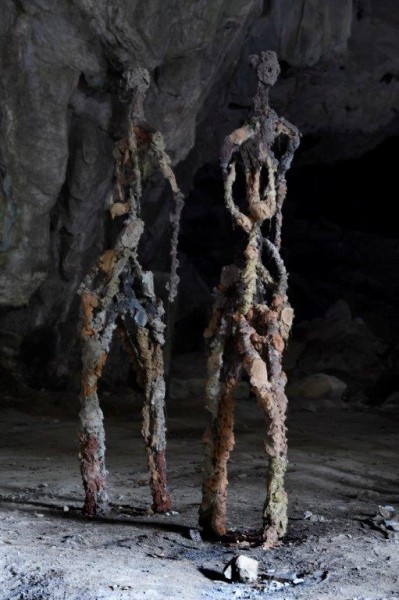 Pour la grotte de Bédeilhac, Lionel Sabatté envisage de ressusciter la double communauté des humains et des animaux qui ont habité les lieux aux périodes préhistoriques dans une réalisation à la fois sculpturale et paysagère à l’échelle monumentale du site. En particulier avec un groupe de sculptures humanoïdes positionné à l’entrée de la cavité et visible de l’extérieur. Ce groupe engage le visiteur à pénétrer plus profondément dans la grotte monumentale pour y découvrir une bête tapie qui fait écho aux réalisations peintes, gravées ou sculptées des artistes de la Préhistoire dans une sorte de dialogue ou de partition transhistorique qui se joue à plusieurs mains à travers l’histoire, le temps et l’espace de la grotte.